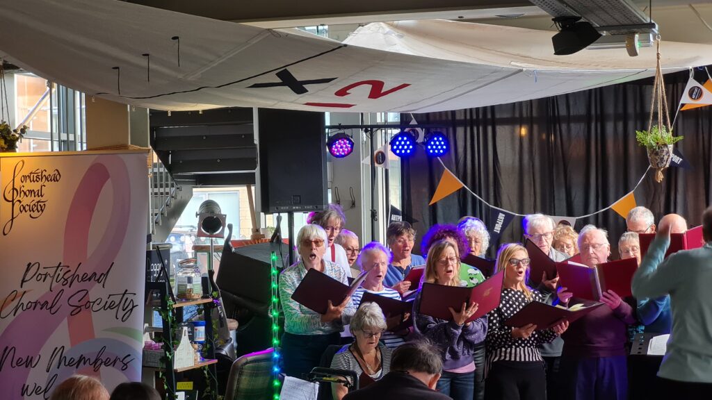 ArtPort 2025Summer 2025 socialPlatinum Jubilee Concert, April 2025Choir at work in rehearsal, October 2022Choir and orchestra assembling in Gordano School hall for the final rehearsal before our Christmas concert, 2019Portishead Choral Society singing carols in Waitrose and collecting for Penny Brohn UK on 18 Dec 2019Portishead Choral Society singing our “From Russia with Love” concert on 8th June 2019Portishead Choral Society singing French sacred music in the Methodist Church in March 2019Singing Music from Venice in the Methodist Church, June 2017Singing Poulenc in Gordano School Hall, Christmas concert, 2016Singing carols at Tyntesfield, Christmas 2016Singing opera choruses in the Methodist Church, June 2015The first performance of Jonathan Palmer’s Awake the Voice, in Gordano School, December 2014
